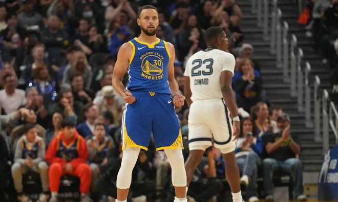 賽季至今的勇士隊,有五人至少場均命中2記三分球,且保持45%+的三分命中率,勇士隊不僅三分遠射出眾,內(nèi)線得分(聯(lián)盟第七)的效率也是聯(lián)盟上游的水準,場均助攻30.5次,聯(lián)盟第三。